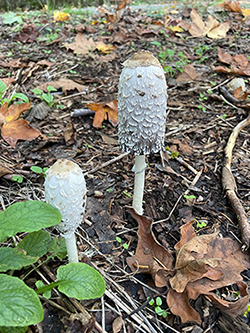 These Shaggy Mane (Coprinus comatus) mushrooms are popping up along the trail. They will "dissolve" into an inky mess.